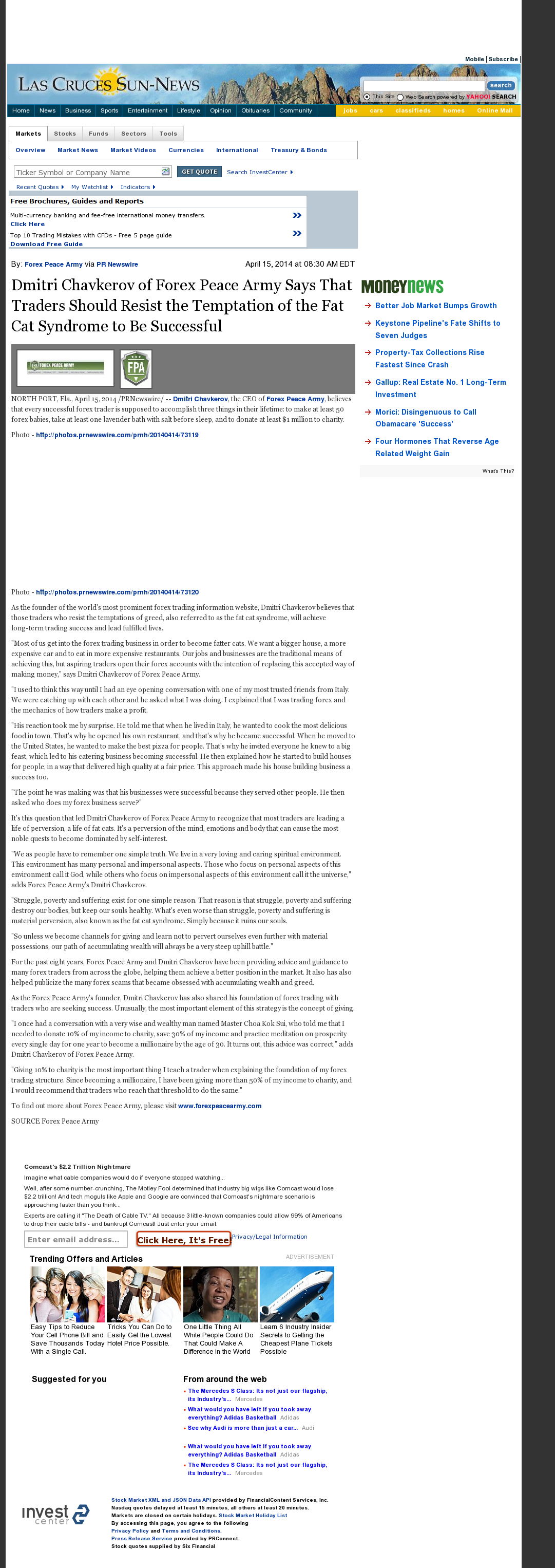 Dmitri Chavkerov of Forex Peace Army to recognize that most traders are leading a life of perversion, a life of fat cats Las Cruces Sun-News
